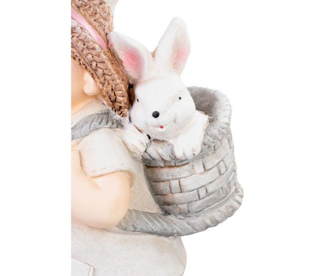 Decoratiune gradina, MagicHome, ceramica, baiat cu iepuras, 23.5x18x48 cm
