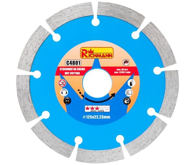 Disc diamantat segmentat, beton, taiere uscata, 125 mm/22.23 mm, Richmann