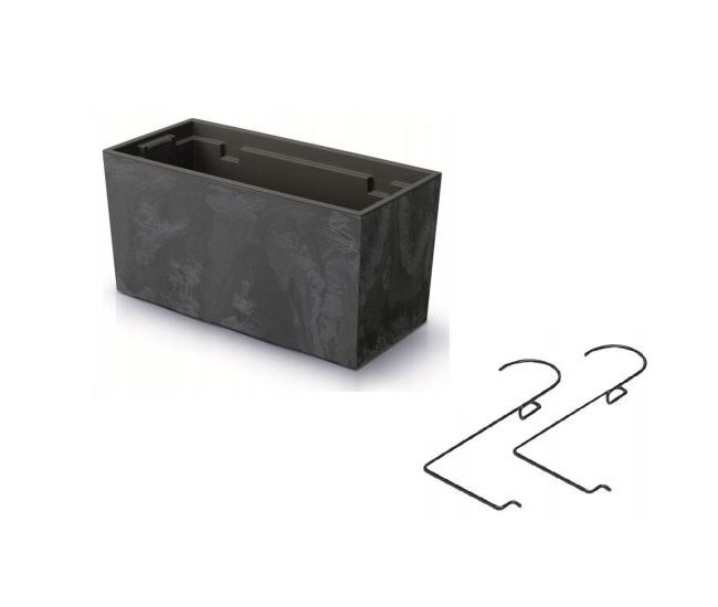 Jardiniera decorativa, suport metalic, antracit, 39.5x18.5x19.5 cm, Urbi Case Beton Effect W
