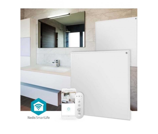 Panou radiant cu infrarosu Nedis WiFi 350W termostat telecomanda IP44 alb 598x620x240mm HTIP350WTW.