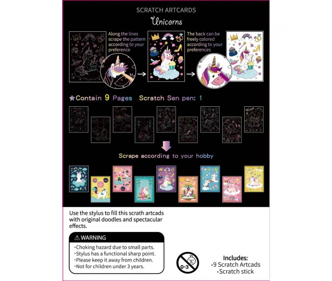 Incercati o experienta diferita de pictura fara a folosi vopsele si pensule. Doar razuiti stratul negru al fiecarei pagini si lasati sa apara treptat modele frumoase si colorate. Setul Scratch ArtCards este un set excelent pentru a dezvolta gandirea creativa, aprecierea estetica si abilitatile motorii fine. Creati capodopere frumoase folosind creionul din lemn inclus pentru a razui suprafata fiselor si a dezvalui imagini
