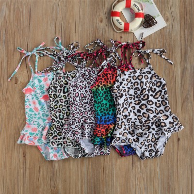 Costum de baie pentru fetite cu imprimeu cu atragator si simpatic. Costumul are volanase verticale in partea de jos pentru un plus de eleganta. Bretel..