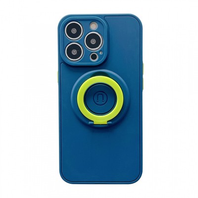Husa protectie Flippy compatibila cu Apple iPhone 13 Liquid Silicone Ring cu suport rotativ Albastru