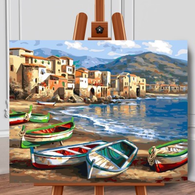 Set pictura pe numere (panza) Barci pe mare 40x50 cm