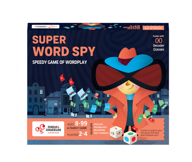 Regulament: Fiecare jucator va purta Ochelarii Spionului pentru a putea descifra literele inscriptionate pe jetoanele cu amprente. Amesteca bine Cardurile cu Misiuni si imparte-le in 3 teancuri in functie de culoare, avand grija sa fie cu fata in jos. Da cu zarul cu culori pentru inceput si descopera ce tip de Misiune ai de indeplinit. Trage un card din teancul in culoarea indicata de zar. Cardurile rosii& albastre - dati cu zarul cu cifre, cititi cu voce tare misiunea de pe card si rezolvati cerinta primul pentru a castiga cardul respectiv. Daca nimeriti un card rosu trebuie sa formati cuvinte care sa inceapa sau sa se termine cu literele de pe card si sa aiba lungimea indicata de zar. Daca nimeriti un card albastru trebuie sa formati un cuvant care apartine categoriei indicate. Cardurile verzi - fara sa va uitati la card, spuneti cate cuvinte credeti ca veti forma in 1 minut. Cel care pariaza pe numarul cel mai mare de cuvinte va castiga dreptul de a rezolva Misiunea de pe card. Aceste carduri contin o parte a cuvantului. Cuvantul format poate sa inceapa, sa se termine sau sa contina aceea parte. Castiga jocul acel jucator care aduna primul 5 carduri.