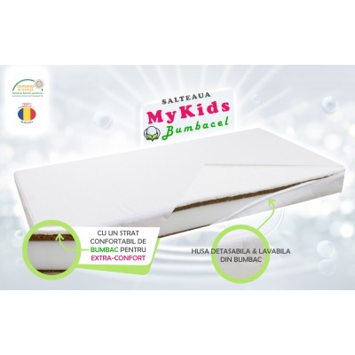 Salteaua pnetru copii MyKids din spuma poliuretanica este ferma, testata dermatologic si confectionata din materiale antialergice si non-toxice.Husa..